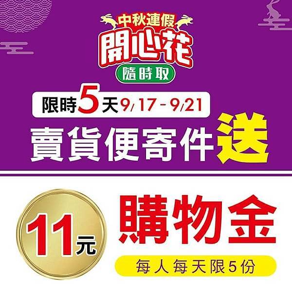 9/17~9/21賣貨便中秋特別活動 寄件送11元購物金